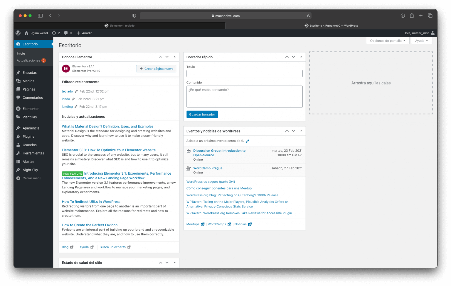 • Actualizaciones de servidor, temas, plugins y núcleo web.