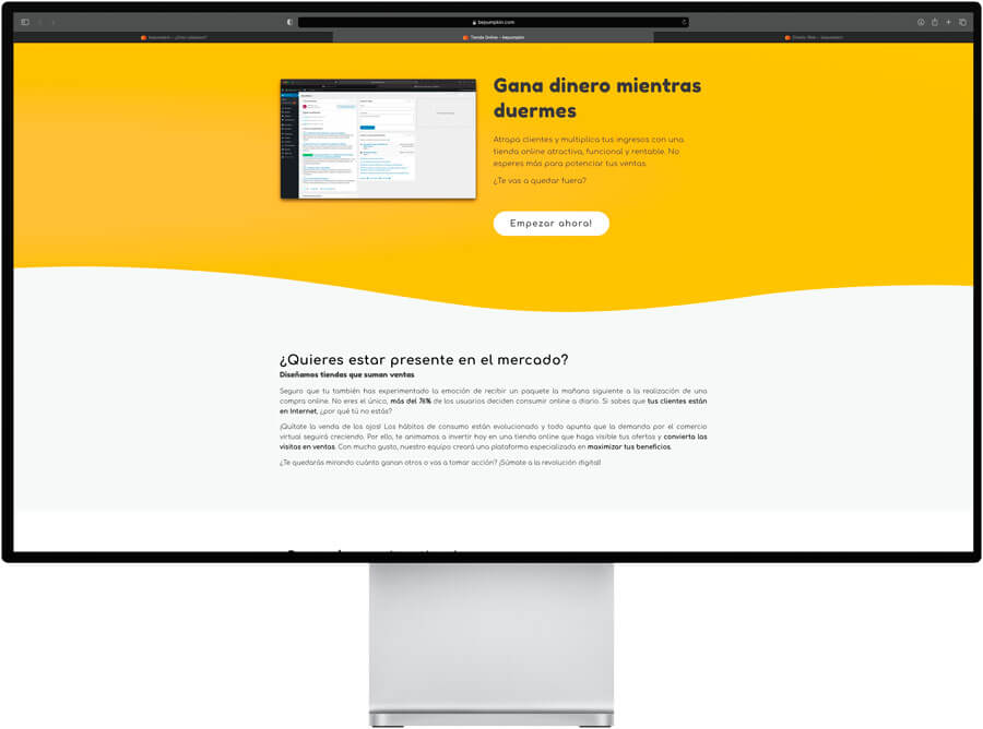En bepumpkin, conseguimos que los usuarios compren en un abrir y cerrar de ojos porque creamos tiendas profesionales pensadas para cerrar ventas. Hacemos todo para lograr que tus oportunidades de negocio sean infinitas.